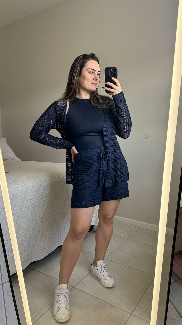 Conjunto Feminino em Tricô Vazado – Azul Marinho